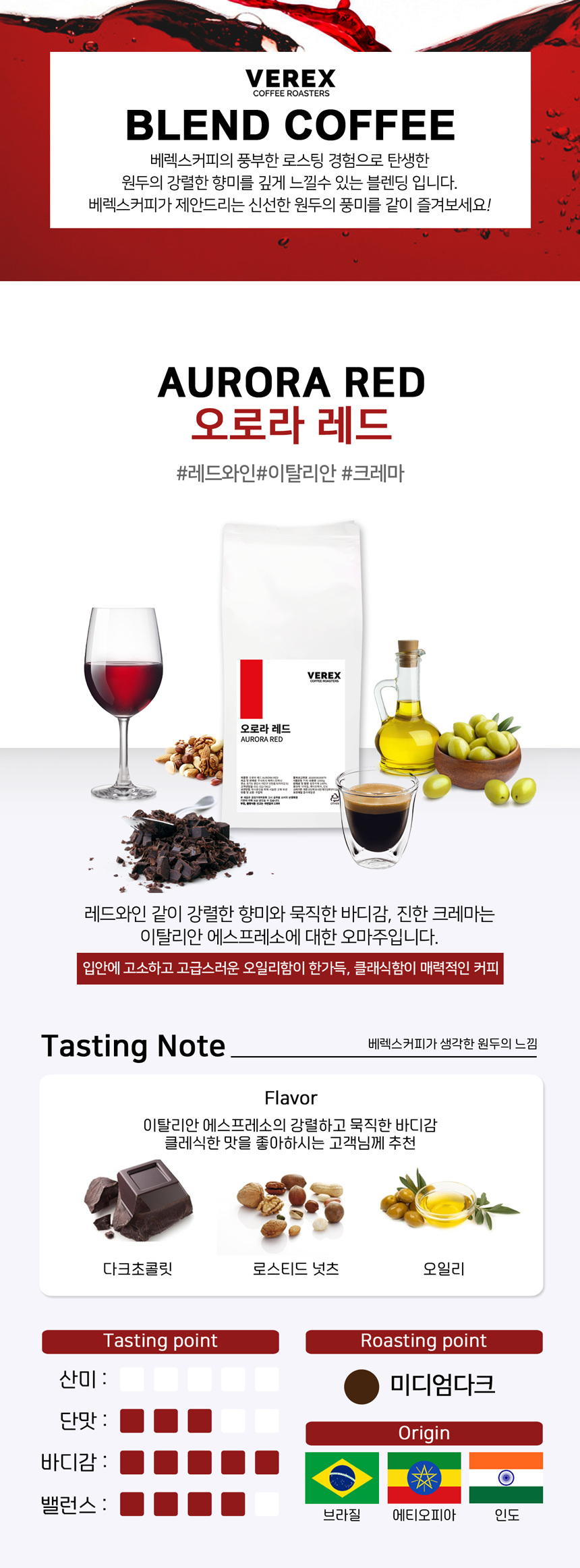 이탈리안 에스프레소에 대한 베렉스의 오마쥬 크레마와 바디감이 풍부한 블렌딩